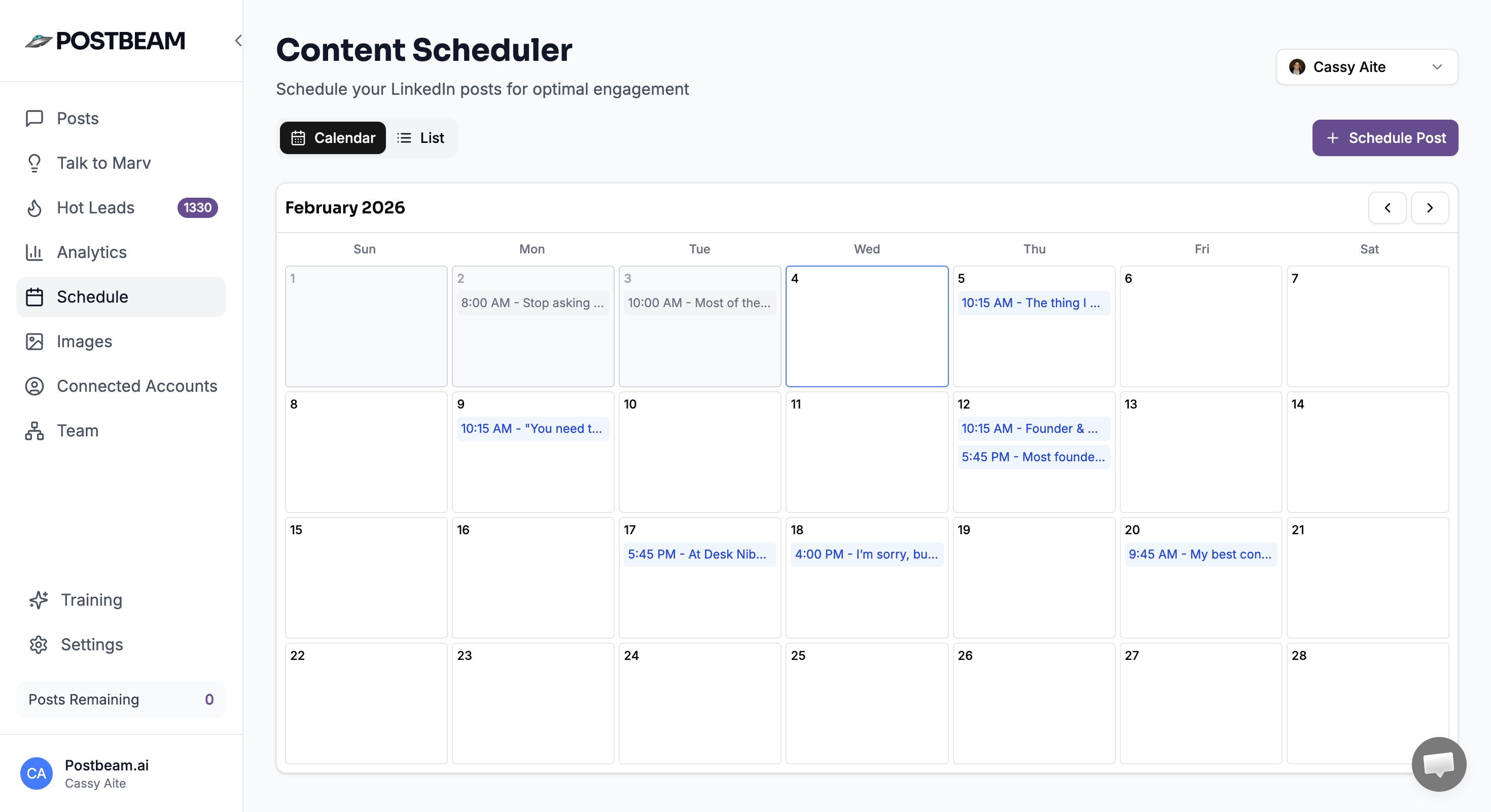 No. Postbeam sits on top of your content workflow. We add Hot Leads and follow-up, not just scheduling.